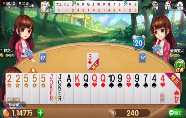 癞子玩法:通俗来说就是变牌,当新对局里的三个玩家各自拿到牌以后。游戏机制会随机选择一张牌的点数变成本局的天选牌。这个牌用途但是非常的大。除了大小王之外,它可以在维持本牌的状况不变,也能在玩家需要相应的点数顺牌时变为对应的牌。换句话说,拥有癞子牌玩家在牌型和玩法上都变得有了更多花样和判断。顺子、连对、炸弹等等都会变得比之前提升许多,还会使游戏的考验变得更加大,快乐也就相应的增多了。如果一个人拥有多张癞子牌,既能帮自己把不顺的牌型捋顺了,也可以给敌人造成许多威胁。因此,一张癞子牌可以掀起多大的风浪,还需要大家自己在对局好好感受。