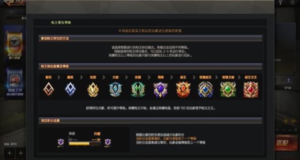 在游戏中玩家排位从抵达荣耀枪王开始,就会通过荣耀结晶进行结算,在排在前100的玩家还会得到枪王之王。这些排位不单单是荣誉的代表,也包含有实实在在奖赏。在其中最基本的有排位币和熟练点,另外还有一些额外奖励。包含各种图标外框以及强力武器等,例如达到枪王SS级时,能够奖赏90天枪王手雷,达到枪皇时可以奖赏AK47枪皇之影肌肤。