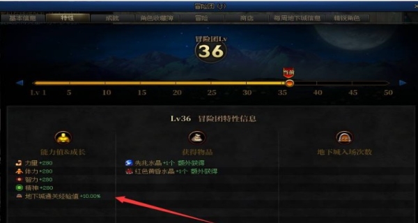 冒险团可以增加角色的属性,提升过关经验。第一页可以清楚地记录着你每天登录次数,储存你地下城内一共打了多少次副本,详尽的记录了通过了多少次副本详情。第二页里记录着你的冒险团等级,对比之冒险团升级之后能够享有什么相对应冒险团等级的额外附加状况。