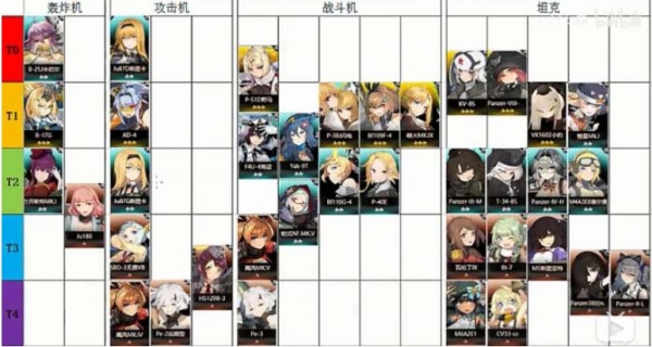 灰烬战线角色强度排行:战斗机:T0.5:P-51D野马;T1:P-38J闪电、Bf109F-4、喷火MK、IX;T1、5:F4U-4海盗、Yak-9T;T2:P-40E、Bf110G-4;攻击机:T0.5::Ju87D斯图卡;T1:AD-4;T2 :Ju87G斯图卡;T3:SBD-3无畏VB-6;轰炸机:T0:B-25J米切尔;T1: B-17G;T2:兰开斯特MK、III-H2S;T2、5:Ju188;