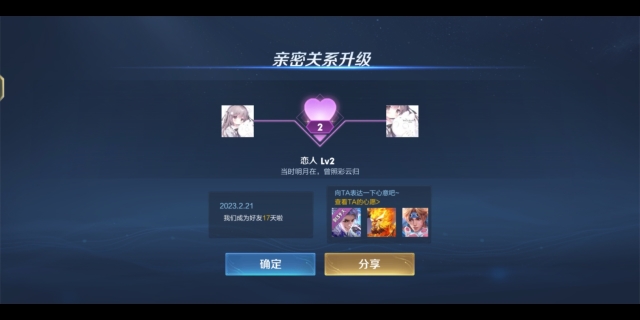 王者荣耀多少亲密度可以建立情侣关系?