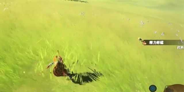 2、使用蹲下和安静靠近的方法捕捉精力蚱蜢。在看到草地上有跳动的蚱蜢时,按住左摇杆让人物蹲下,然后静悄悄地靠近它们。当屏幕上出现提示时,按住A键就可以捕获。