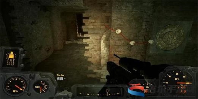 5、进入老北教堂后,右拐进入到地下通道,在自由之路环上输入密码(RAILROAD)来开启大门。