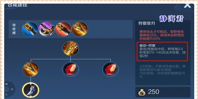 特点:增加物理攻击、物理穿透和冷却缩减,适合刷野,特别适合刺客型打野英雄。