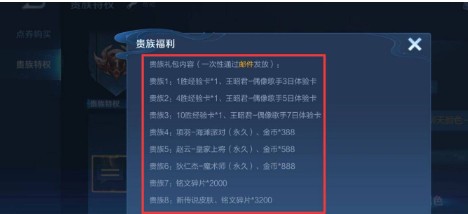 这些特权福利当玩家在达到了贵族六之后都会自动的开启,奖励规则是每一周以邮件的方式发送给游戏玩家,其中皮肤礼包等等都是以邮箱发送出去,到时候游戏玩家注意查收一下即可。