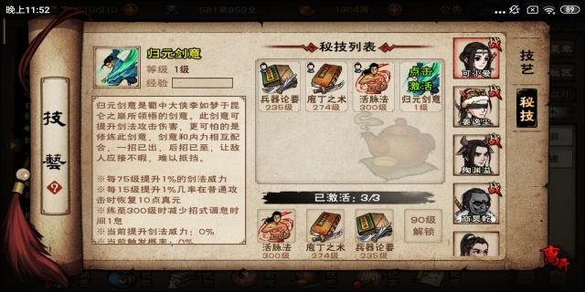 获得并领悟归元剑意。当玩家获得4块石钥碎片后,能够在背包中组合成石钥。随后前去成都杜甫草堂,搜索并嵌入石钥,进入暗道,之后进入水洞,利用水浮往前走,会看见一块儿石碑,点击即可得到归元剑意。