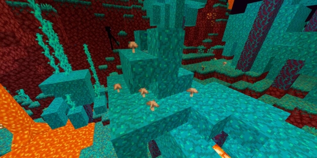 诡异森林是一种独特的下界生物群系,展现出深蓝或青紫色调。这一个生物群系的特征包括: