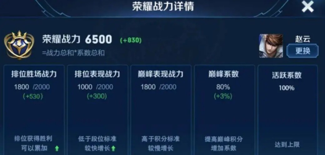 因此想要增加玩家的战力就不要去打匹配模式,不过要注意的是排位赛中的战力只会增加玩家的场次战力、排位表现分战力和英雄的活跃指数成绩。不会增加英雄的巅峰表现战力,如果想要增加英雄的巅峰表现战力,还是要在巅峰赛中加入英雄的巅峰表现战力和顶峰表现指数分。