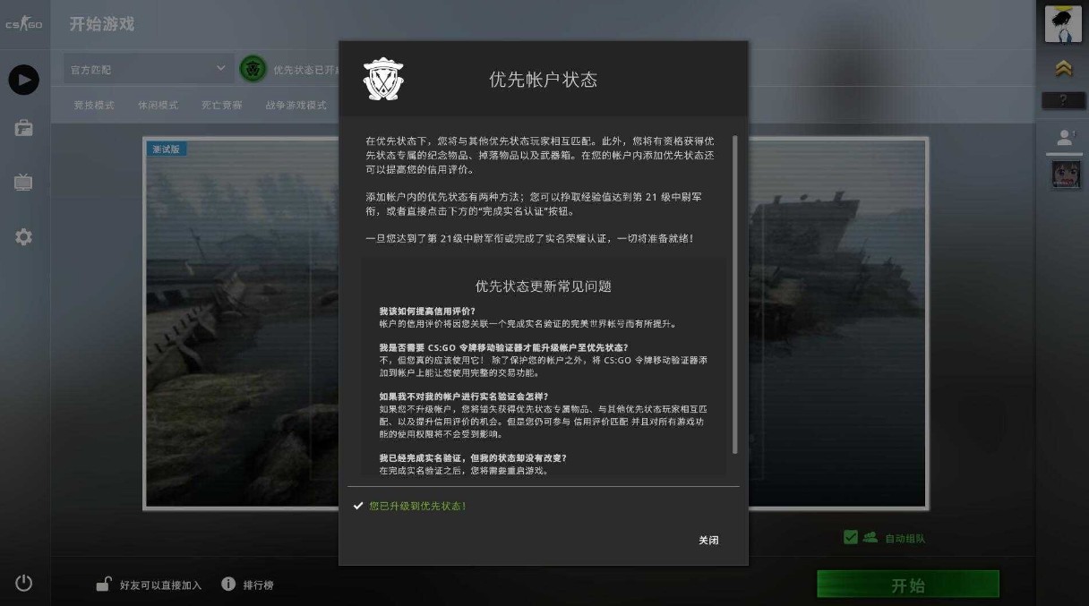 csgo优先账户免费获得方法