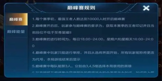 王者巅峰赛什么时间可以打