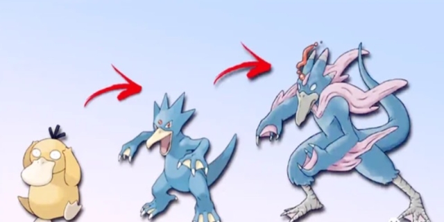 当可达鸭达到33级并完成进化后,它会变身为哥达鸭。哥达鸭同样拥有强大的战斗能力,并且能够继续学习和使用水系和精神系的技能。这使得哥达鸭在游戏的后期阶段依然能够保持强大的战斗力,成为玩家队伍中的得力干将。