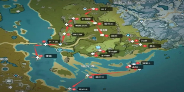 岩神瞳位置及拿法:位置分布:岩神瞳的分布范围广泛,涵盖了游戏地图的多个区域,包括归离原、轻策庄等。每个区域都有其独特的收集挑战和策略。例如,归离原区域就有八颗岩神瞳,分别隐藏在石头后方、风车附近、建筑物二层、高处等地点。