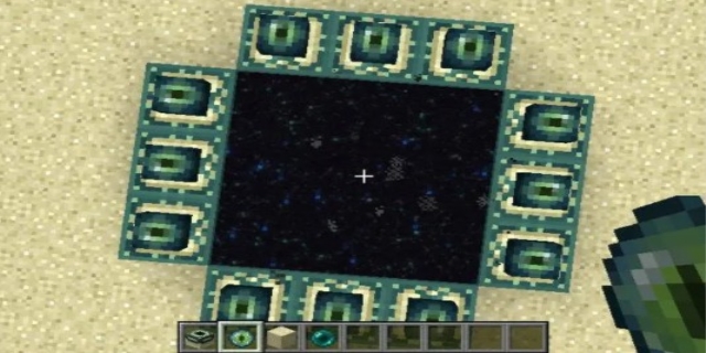 搭建末影门框架:选择一个合适的位置来放置末影门。使用12个末影门方块搭建一个3x3大小的正方形框架。确保绿色的边框对准传送门的内侧。