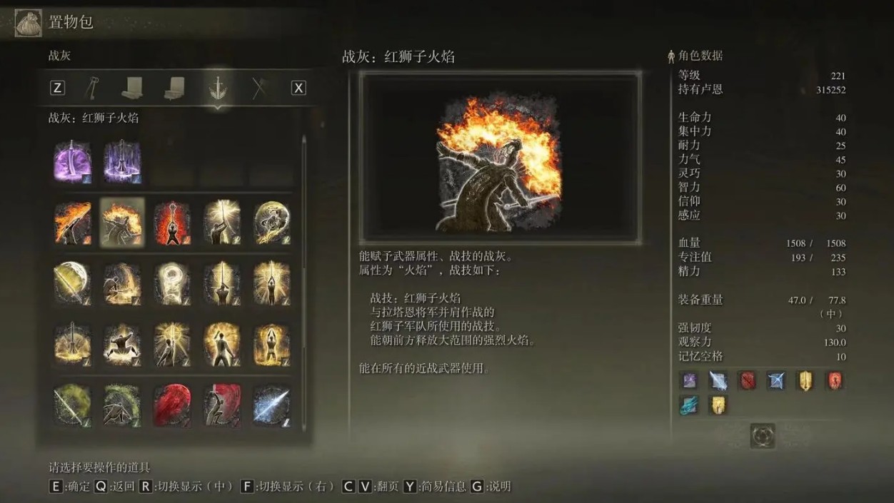注意事项:每把武器只能有一个武技,赋予新武技之后会移除原先的武技。部分特殊武器,如有着固有武技的武器,可能不能应用战灰赋予新的武技或属性。应用战灰时,可以根据个人喜好和战斗风格来选择合适的武技和属性进行搭配。