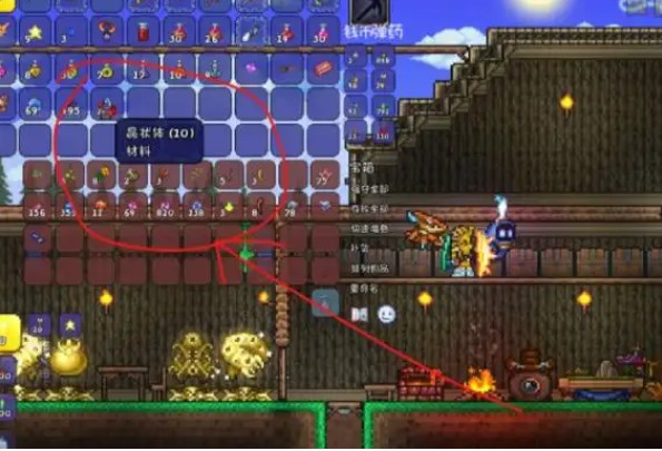 合成流程:找到恶魔祭坛或猩红祭坛。靠近祭坛,开启合成界面。将6个晶状体放进合成页面的相应位置。点击合成选项,即可合成可疑的眼球。除了合成以外,可疑的眼球也有一定几率出现在洞穴、地牢里的金箱子内,或是在地下丛林的常春藤箱里。