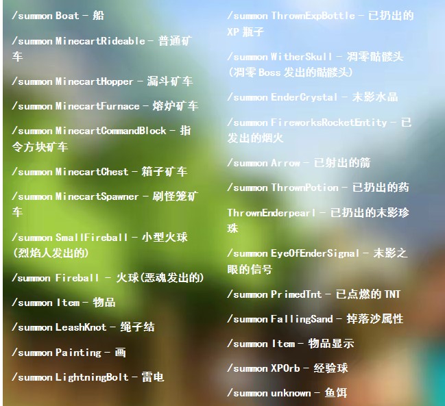 我的世界物品英文名大全