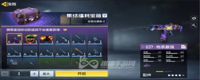 “g37地表最强”是由【结集褔利神秘宝箱】抽出来的皮肤。玩家可以根据参加各种活动来累积活跃度,然后就可以领到这一结集褔利神秘宝箱。在挎包里边寻找库房,挑选开启结集神秘宝箱,假如你运气好的话,就可抽中这一G37地表最强。