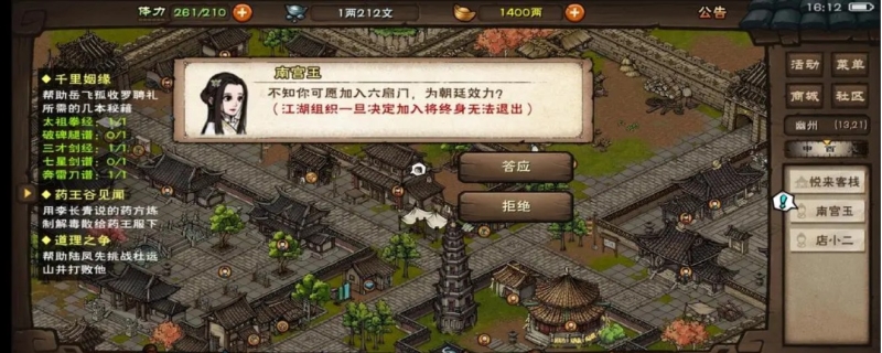无悔华夏中山王如何buff城市建设与发展达标:中山国境内的城市建设水平对开启Buff也很重要。玩家需要将主要城市的各类基础建设健全,如田地级别要达到一定规范,保证粮食生产平稳;市场建设要繁荣,推动经济贸易,提升钱财收益。同时,城市人口规模也需达到一定数量,人口的增长代表着劳动力和兵源的提高,这是国家强大的前提。当城市建设的各项指标综合达标后,就有可能激活中山王 Buff。特定人物互动与任务:游戏中