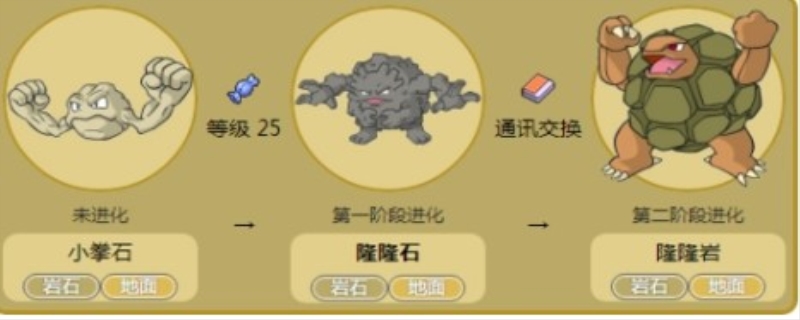 宝可梦隆隆石只要达到36级时就可以进化成隆隆岩。隆隆岩由隆隆石进化而来,隆隆石是由小拳石进化来的,小拳石灵兽一个比较常见的精灵,获得了小拳石以后,升级成级别以后点击进化成隆隆石,之后对其使用链接绳或是进行连接互换,隆隆石就能进化成隆隆岩了。