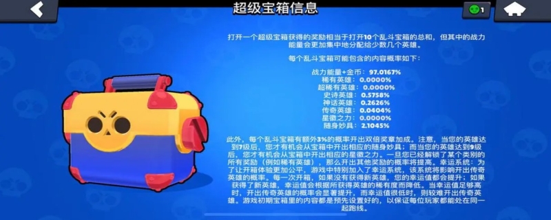 荒野乱斗超级宝箱出英雄概率