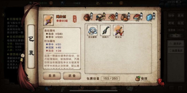 在《烟雨江湖》中,越女剑没有必要进行打造。因为作为橙色装备,越女剑的加成属性是固定的,而且特殊材料的运用也不会影响其基础属性。因此,将其作为过渡装备使用即可,无需在这把武器上投入大量资源。